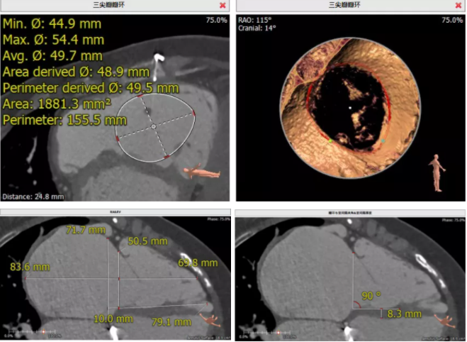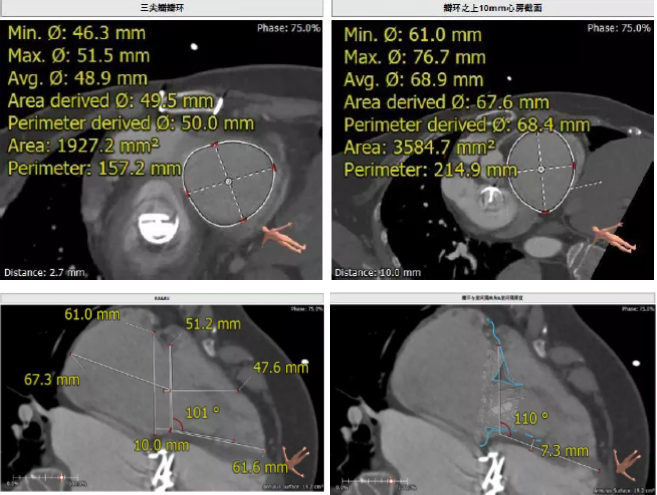 患者為68歲女性,14年前因“反復感冒、氣促”,檢查發現心臟瓣膜病,接受了“二尖瓣機械瓣置換術”。約5年前出現雙下肢水腫,活動后心累氣緊,心臟彩超提示:三尖瓣返流。近年來三尖瓣返流逐漸加重并伴有輕微黃疸、雙下肢水腫,雖長期服用利尿劑治療,但效果欠佳。郭惠明教授團隊結合病史、超聲及CT評估,考慮患者瓣膜置換術后,三尖瓣重度返流,再次開胸行體外循環手術風險高,經團隊整體評估,決定采用最適合患者的LuX-Valve三尖瓣置換系統行微創治療,根據測量結果選擇植入JS/TTVI-28-55型號的LuX-Valve瓣膜。
