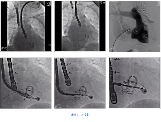 根據(jù)術(shù)前評估結(jié)果,郭應(yīng)強(qiáng)教授團(tuán)隊為患者量身定制了手術(shù)策略,決定使用LuX-Valve Plus經(jīng)血管三尖瓣置換系統(tǒng)開展手術(shù)治療。手術(shù)在全麻下進(jìn)行,采用經(jīng)右側(cè)頸靜脈入路,在經(jīng)食道超聲和DSA的指引下調(diào)整輸送器角度以達(dá)到正確位置,勾住前瓣后逐步釋放盤片,盤片打開后順利扎針,最終完成瓣膜植入,輸送器撤出。術(shù)后超聲提示人工三尖瓣同軸性良好,瓣架固定牢靠,無反流和瓣周漏,術(shù)后三尖瓣平均跨瓣壓差為1 mmHg。