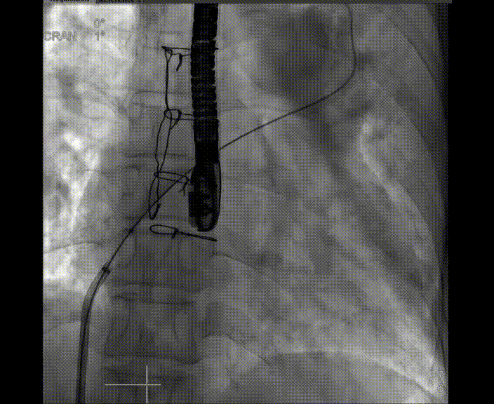 心房分流術是通過器械制造穩(wěn)定可控的心房間分流,適應證包括藥物治療效果不佳的左心衰或肺動脈高壓右心衰。本例患者為肺動脈高壓右心衰,術中成功放置MicroFlux®造孔支架在房間隔理想位置上,創(chuàng)造穩(wěn)定可控的心房間分流(此例患者以右向左分流為主),在不顯著增加左心負擔的情況下,有效降低患者右心房壓力、緩解體循環(huán)淤血,增加左心輸出量,改善患者癥狀、活動耐力和生存質量。同時,國內外也已經開展多項房間隔造孔支架在射血分數保留、射血分數中間值和射血分數降低的左心衰患者中的臨床研究,結果顯示對于經過充分的規(guī)范化藥物治療后仍控制不佳的患者,心房分流術可改善患者的癥狀及生存質量。