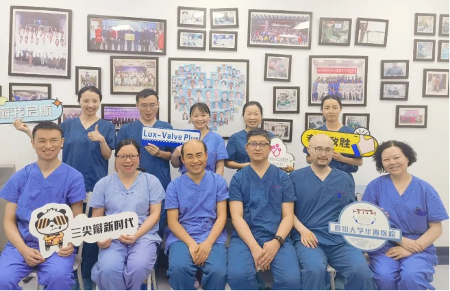 2022年5月27日,四川大學(xué)華西醫(yī)院心臟內(nèi)科陳茂、馮沅教授帶領(lǐng)的瓣膜病介入治療多學(xué)科團(tuán)隊,在國內(nèi)首次采用純介入方式通過穿刺右側(cè)頸靜脈成功完成經(jīng)導(dǎo)管三尖瓣置換。植入的人工瓣膜是具有中國自主知識產(chǎn)權(quán)的LuX-Valve Plus系統(tǒng)。術(shù)中上海長海醫(yī)院陸方林教授和喬帆副教授給予了在線支持。