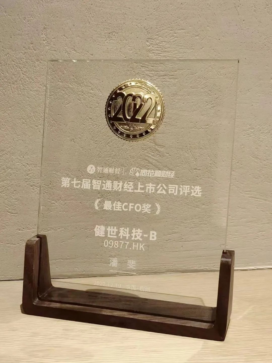 “最佳CFO”獎項根據公司首席財務官與資本市場投資者們的積極溝通互動,由港股通主要機構投資者們參與評選,通過“網絡投票+專家評審團審議+大數據分析”的方式,綜合評選得出的最終結果,旨在表彰公司在資本市場上所展示出來的發展潛能,體現資本市場對于公司首席財務官在財務管理、信息披露以及投資者活動等工作的肯定。健世科技CFO潘斐先生榮膺本屆“最佳CFO”獎項。